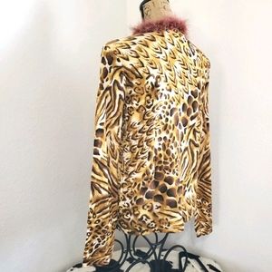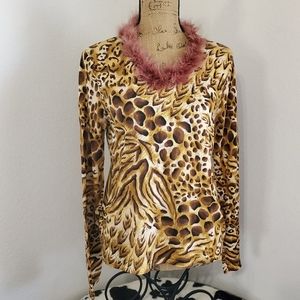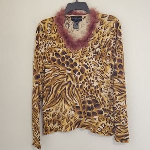 AUGUST SILK Animal print faux feather detail sweater Lg mob wives