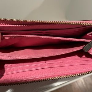 Coral pink Coach wallet.