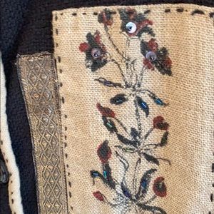 Flashback large vintage jacket. One front pocket. Buttons down the front lovely buttons. Lots of trim and patchwork detail. Nice condition. Armpit to armpit measures 23 inches. Length 23 inches.
