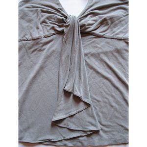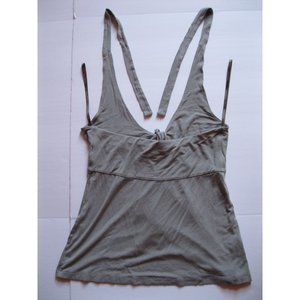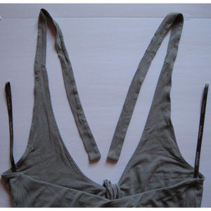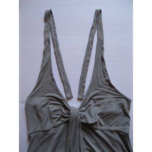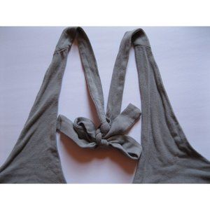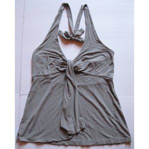 Tommy Bahama brand halter neck tank top. Gray with tie string for neck. Pretty ruffle down front. Very soft fabric. Breezy and comfortable for summer.