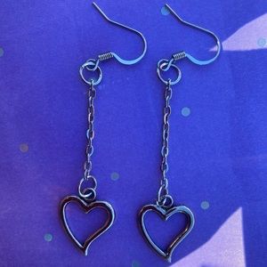Hand made dangling earrings with a 5 cm chain with heart pendant