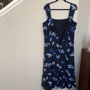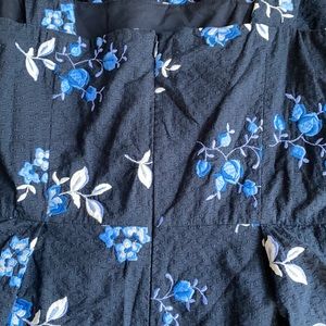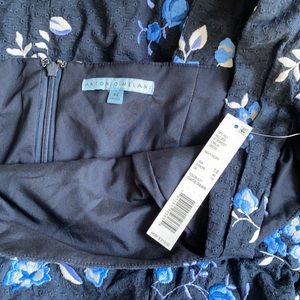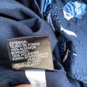 Great embroidery details in blue and white floral. Sheath silhouette with a square neckline. Invisible zipper back with closure. Lined. Sleeveless. Quality here, is talking!!!!
