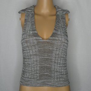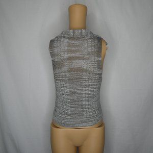 Nice knit sweater tank with deep v neck and collar. Space dye grey/tan. It has a few loose threads but is overall in excellent condition. OB505761