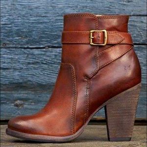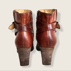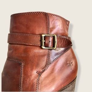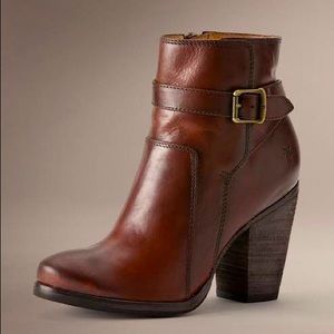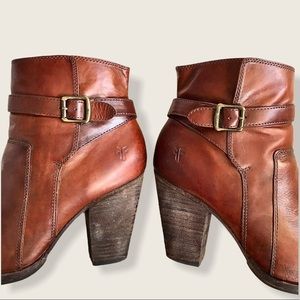 Frye Pattie Cognac Leather Belt Cute Ankle Booties