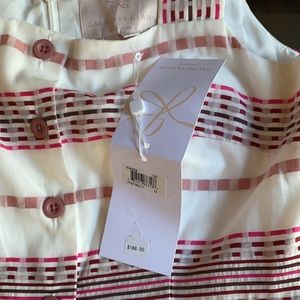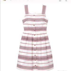 Enjoy the sun in simple style with this cotton-blend sundress featuring square necklines, a buttoned front and colorful dashed stripes. Beautiful colors displaying in her.