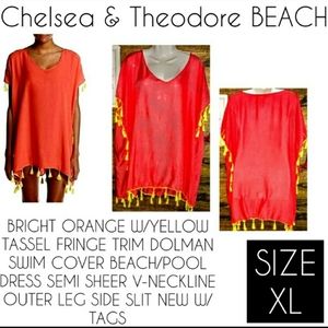 Chelsea & Theodore Pom Pom Dolman Swim Cover Up Size XL NWT