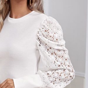 boho white puff floral long sleeve lace top