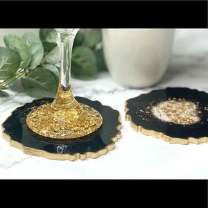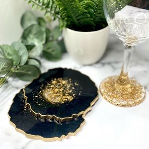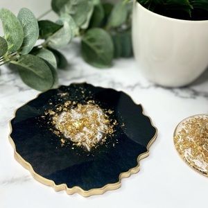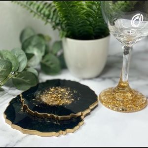 Black and Gold Geode Coasters | Set of 2 Coasters