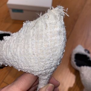 •Frayed tweed upper