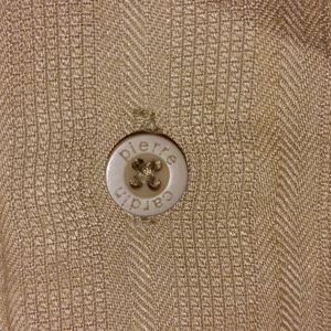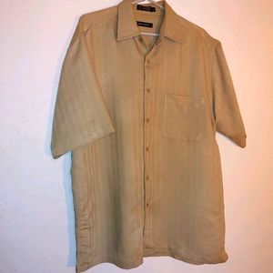 Pierre Cardin. Shirt sleeve. Size Large 16 - 16 1/2". Color Tan (close up of button shows true color). Very nice textured fabric. Excellent condition.