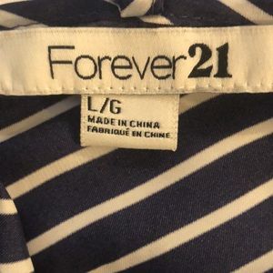 Navy blue and white striped flowy tank. Satiny material. Thin adjustable strap. Tag says to dry clean but I’ve washed in machine with no problems.