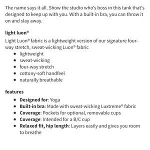 NWOT Lululemon Slay the Studio 2-in-1 Tank