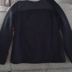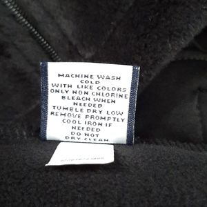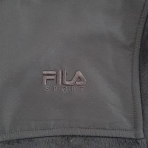 New with tag. Women's black FILA Sport fleece zip up jacket. Top part of front and back are a different material that the bottom and sleeves. Inside, bottom and sleeves are the fleece material. Has pockets. Hem on end of sleeves and opening to pocket also have the firmer material that is at the top of the jacket.