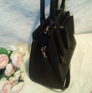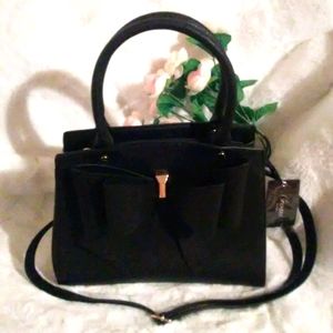 NWT Crossi New York Black faux leather satchel with crossbody extension.