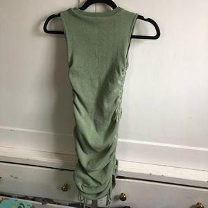 Mini dress by Lioness (sold by Princess Polly) in size XXS (fits 0-2). made of stretchy knit material with ties on sides to adjust length and ruching. In excellent condition, only worn once.