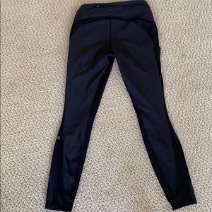 Stay toasty in these rare fleece lined lululemon leggings with a back zip pocket, two side pockets, draw string, reflective detail, and water repellent! Perfect for those wet and winter days. Has some lint collection on interior as photographed in last picture.