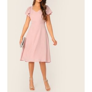 Pastel Pink Solid Flutter Sleeve Fit & Flare Dress