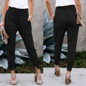 Comfy Chic on trend cotton joggers with pockets and slit accenting ankle