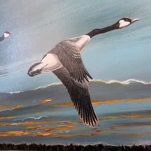 Acrylic Painting by zjsstudios on Instagram. This hand painting geese art is perfect for any wall or mantle! Size 12” x 24”