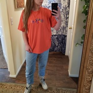 Some bleach stains throughout, but otherwise in excellent condition. Would look super cute cut into a crop and worn with some mom jeans!