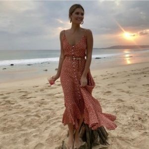 polka dot v neck ruffle button up cami maxi orange