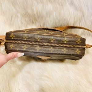 Authentic Louis Vuitton - Used - Exterior canvas is in good condition. Exterior leather is worn - has scratches & scuffs & has tanned some. Interior has some wear but nothing major. Interior zippered pocket is dirty/dusty inside - can be made usable if cleaned out - & zipper pocket is a little stiff but still works. Exterior pocket is scuffed inside but no one will ever even see that - also needs to be wiped/cleaned out. Has a long adjustable strap - can be used as a cross body