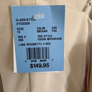 NWT - Spaghetti Strap Full Skirt Bridesmaid Dress in the color Champagne ( cover stock photo is the actual color I am selling, secondary stock photos at the end of the listing are NOT in the correct color )