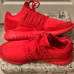 Men’s Red/Red Adidas Tubular Shoes