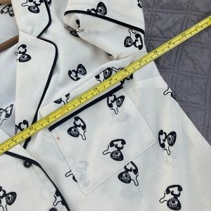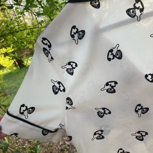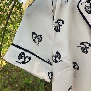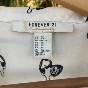 This. Top. Is. So. Cute!!! Holy moly. This top is adorbs. It is from the Contemporary line at Forever 21. It has small black buttons and an awesome collar. Size XS. (I think it runs big-see pics of measurements). Very light off white and black print with old school vintage telephones (SO cute). There are a few spots (included in pics) and a light discoloration from makeup that should wash out. I’m not a graceful girl, so no more light colors for me ❤️ Save this top from my wrath ASAP😂💗😂