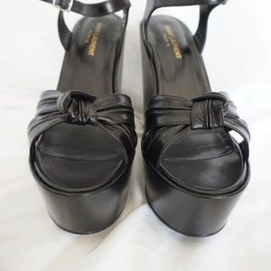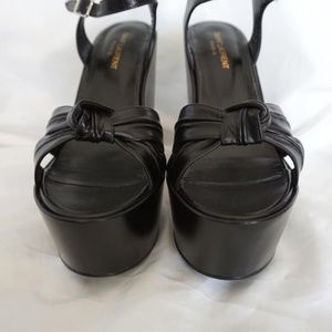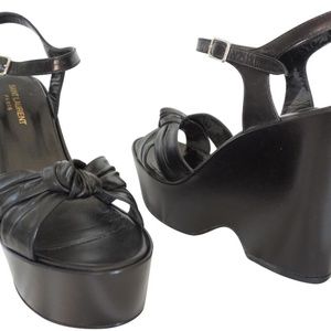 100% Authentic Designer Saint Laurent Black Wedge Platform Sandals