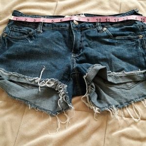 Lot of 2 pair, Super cute Altar'd State Shorts. One light blue, distressed, lacey inserts, and 1 darker blue. Both 5 pockets, button and zip closure. Excellent used condition, measurements in pics, size 7 (28). Offers welcome