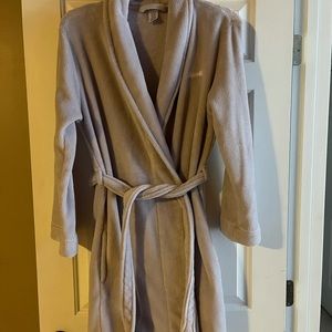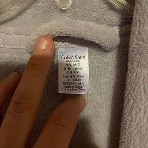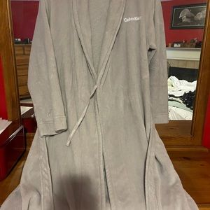 Calvin Klein long robe♥️🖤 size M/L long grey fleece robe!! Awesome condition only selling because I need to down size my robes, I have to many and only want to keep 2, very nice Calvin Klein robe! Nice and plush fleece, super soft to be comfy in at home!! Worn twice, washed twice!! Two front pockets with Calvin Klein embroidered on the front!!