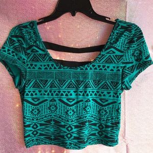 Charlotte Russe Turquoise, Patterned Crop Top 🦋