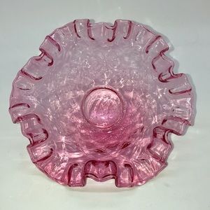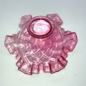 This beautiful Vintage Hand Blown Pink Cranberry Glass Bowl has a crimped ruffled edge.