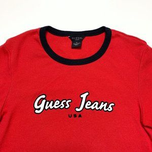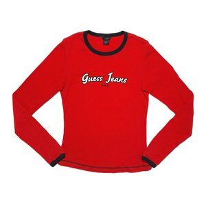 Vintage 90s Y2K Guess Red Long Sleeve Logo Top