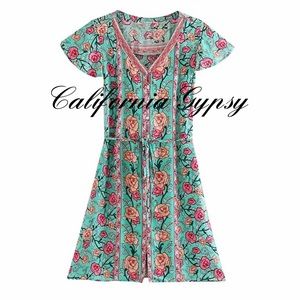 Boho Gypsy Rose Floral Mini Dress
