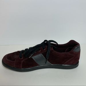 Prada Burgundy Suede Sneakers with Black Leather