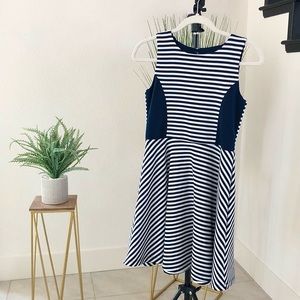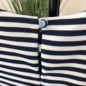 Posh show description: ZUNIE Navy blue and white striped sleeveless dress from Macy’s. Size 14. Great condition. Shoulder to hem: 32”, Pit to pit: ~14”
