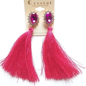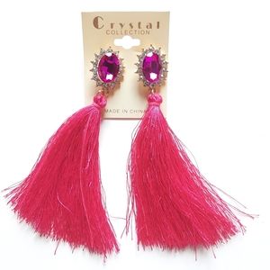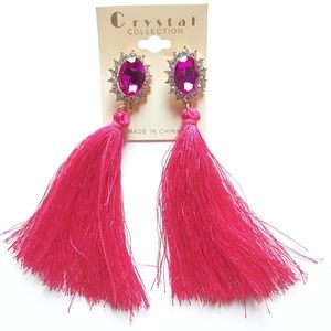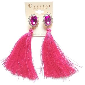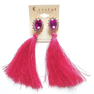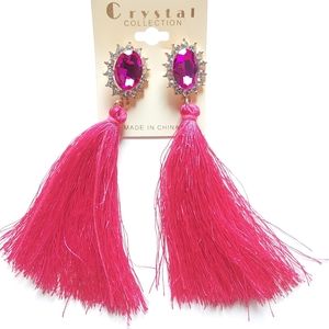 Crystal Collection Hot Pink Tassel Earrings