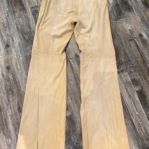 These pants are the softest thing you will ever touch. cream/beige in color, zipper in the back, with original pattern on the front.