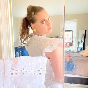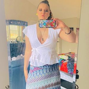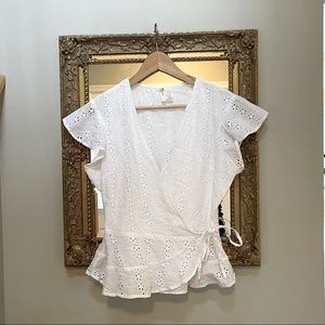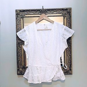 -Selling Japna white eyelet short sleeve wrap top size large