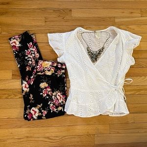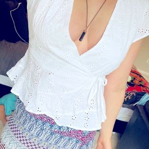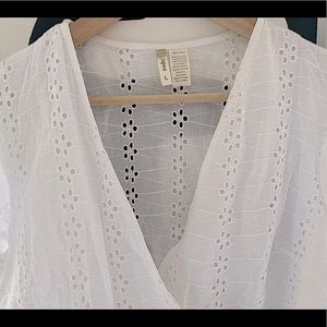 Japna white eyelet short- sleeve wrap top large