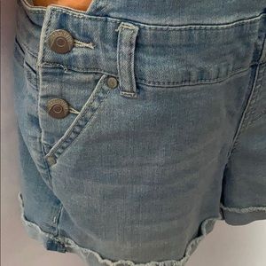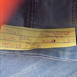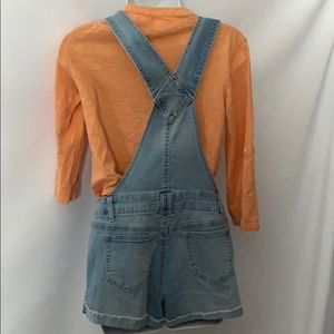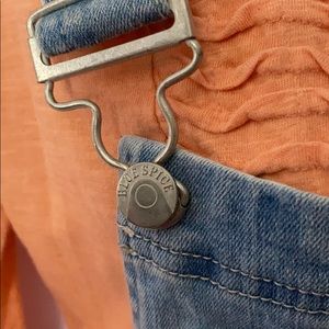 Blue Spice bib overall cut off and rolled. Adjustable Straps lots of pockets.