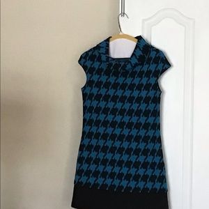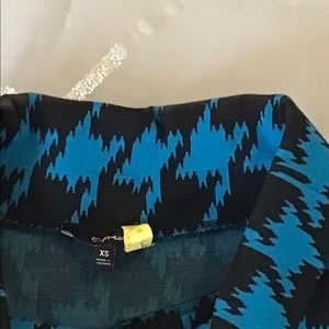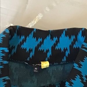 Electric Blue and Black! Fits about mid thigh. I’m 5’2 for reference.