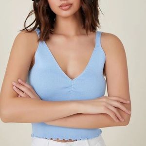 Ice Blue Crop Ribbed Knit V Neck Tank