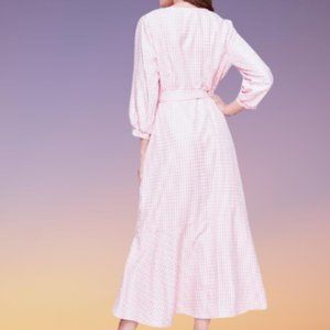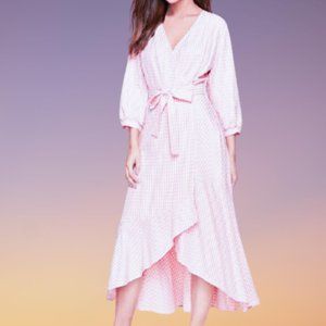 🆕Gingham Check Wrap Dress size XL (12). Long sleeved, pale pink print. Flutter asymmetrical hem. 65% cotton, 35% polyester. No stretch to fabric. Adjustable self tie waist. Measures approx 22" pit to pit, 17" across waist, 53" long, 19" sleeve.