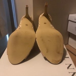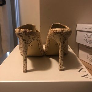 Multi colored snake skin pattern high heeled mule. Natural color. Worn 1x
