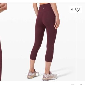 Lululemon Wunder Under high- rise Crop Leggings *Full-On Luxtreme 21 inch color is a burgundy color called “Garnet”