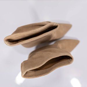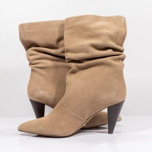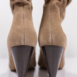 Suede Boots that feature a slouchy design and cone stacked heel.
