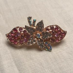 Rose Goldtone. 2.5 inches wide. Pink and white crystal rhinestones.